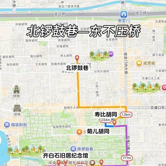 北锣鼓巷——寿比胡同——菊儿胡同——东棉花胡同——雨儿胡同——东不压桥胡同
