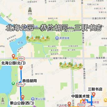 北海公园(北门)——恭俭胡同——景山公园——北大红楼——中国美术馆——三联书店